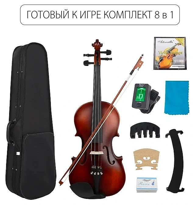 Инструмент станет отличным подарком и для ребенка, и для взрослого. Готовый комплект включает в себя все необходимое для начала музыкальной карьеры. В комплект к скрипке идет удобный кейс для хранения и транспортировки.
